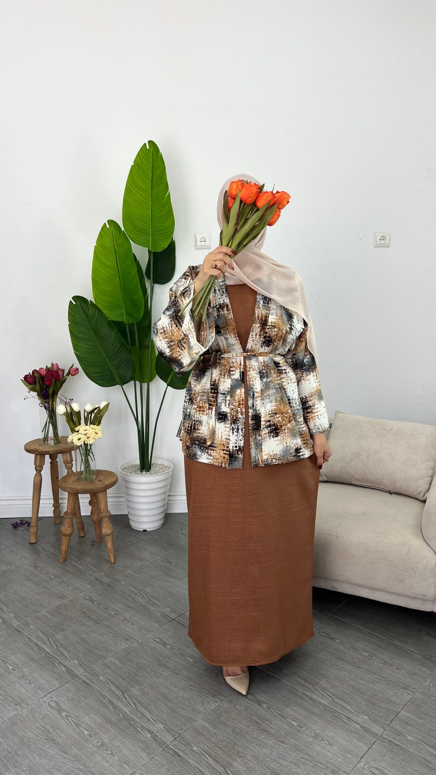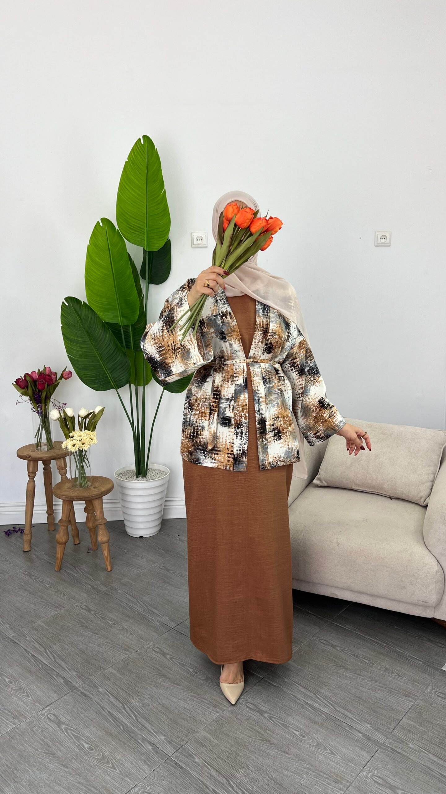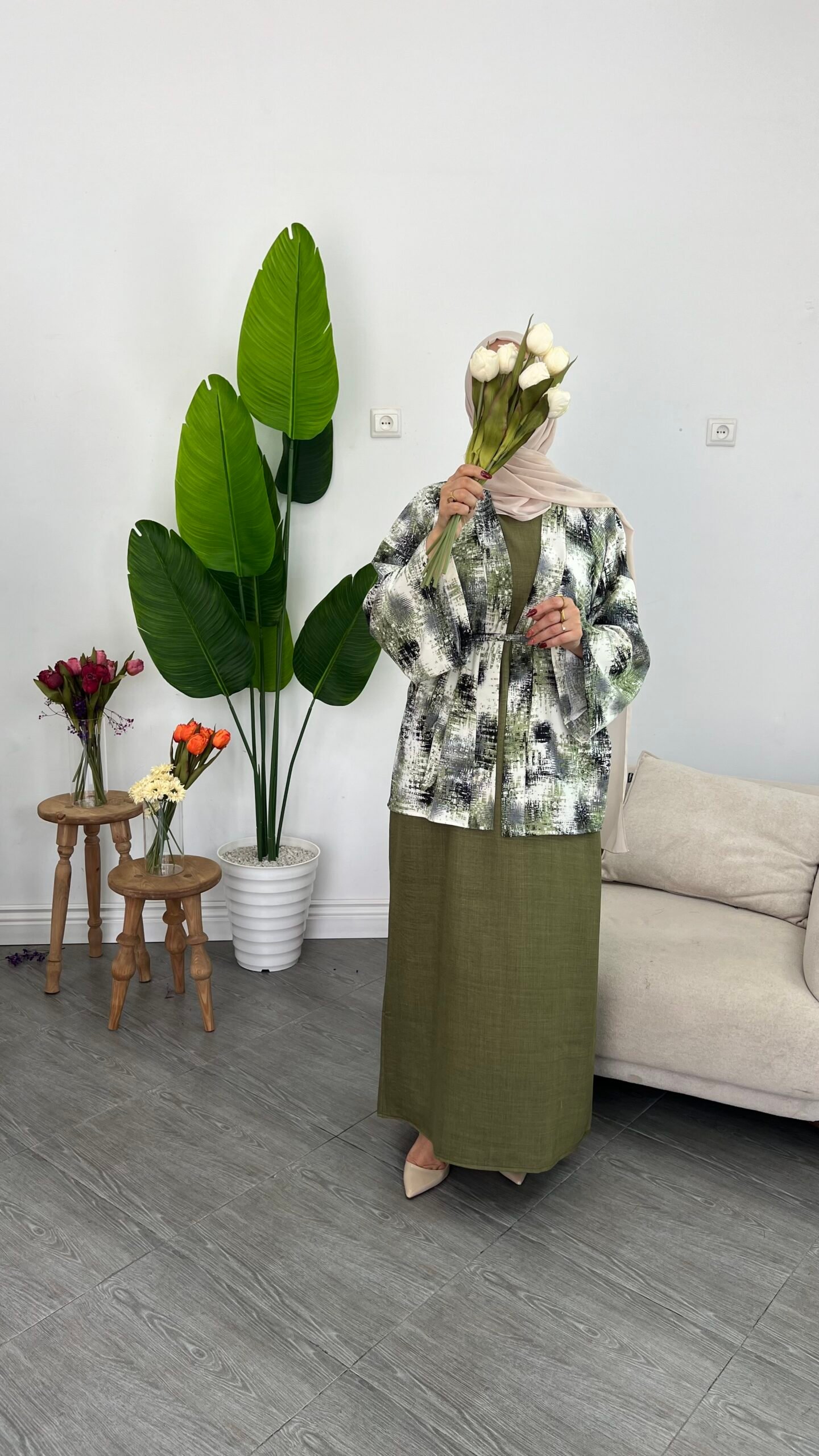 Kimono Vert + robe verte, Kimono Vert + robe noire, Kimono marron + robe marron, Kimono marron + robe noire