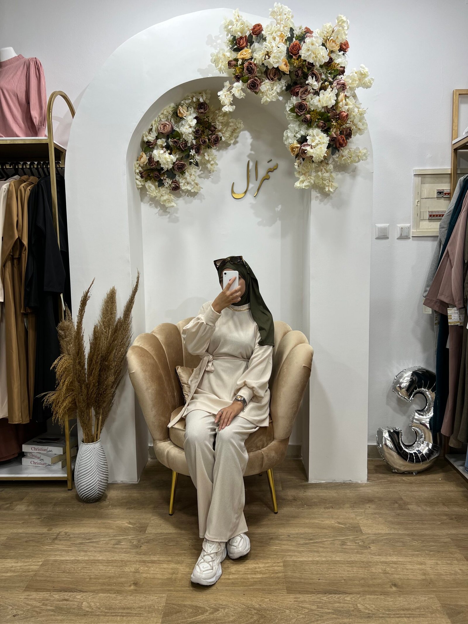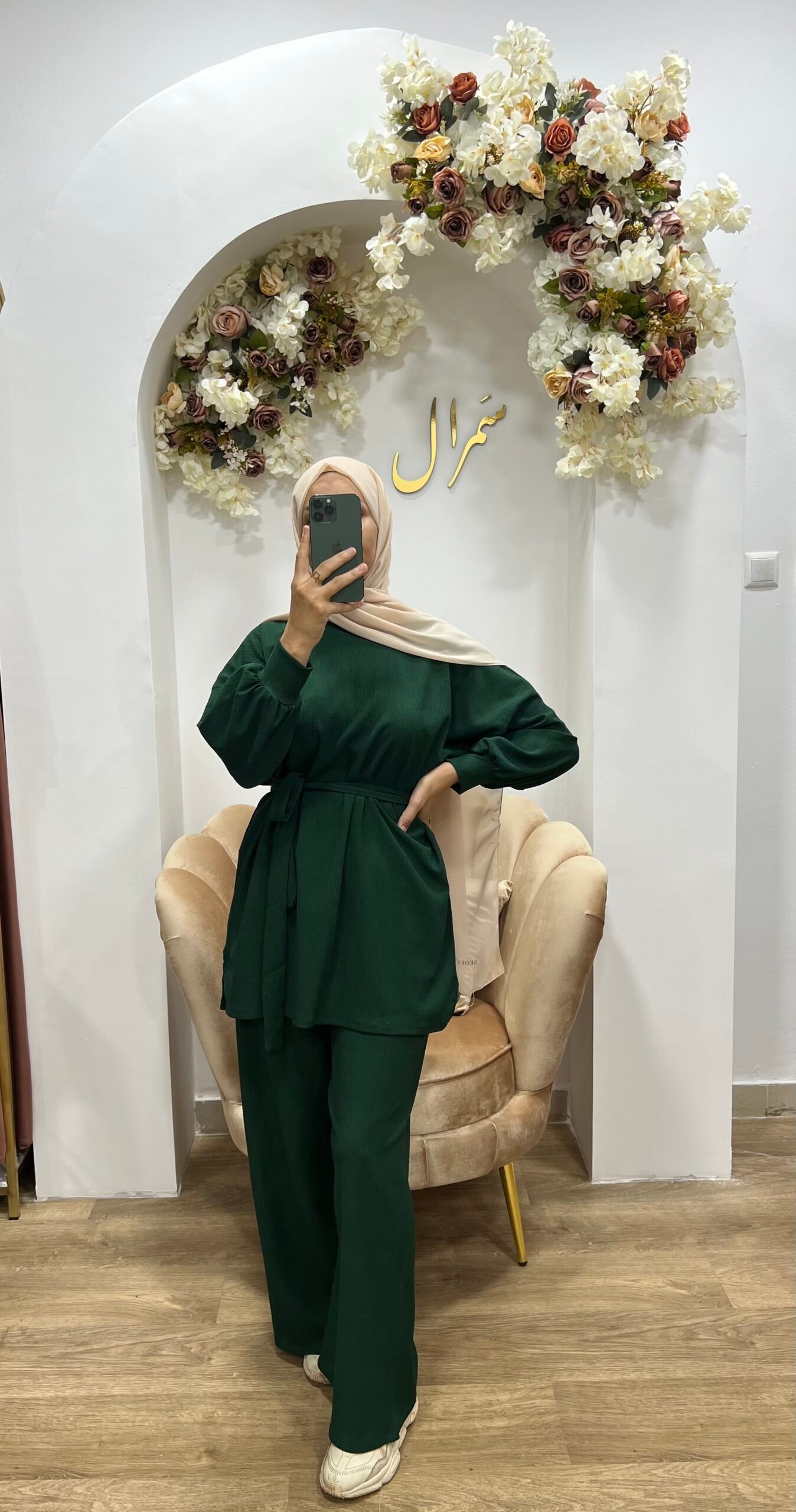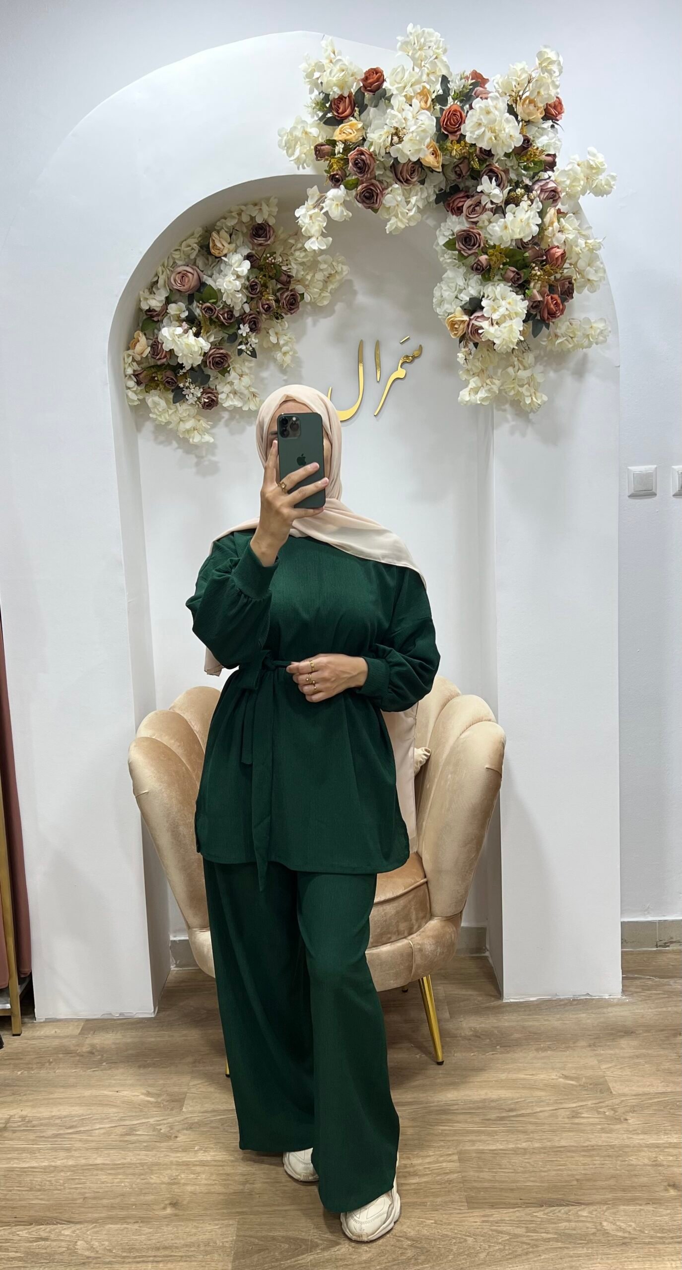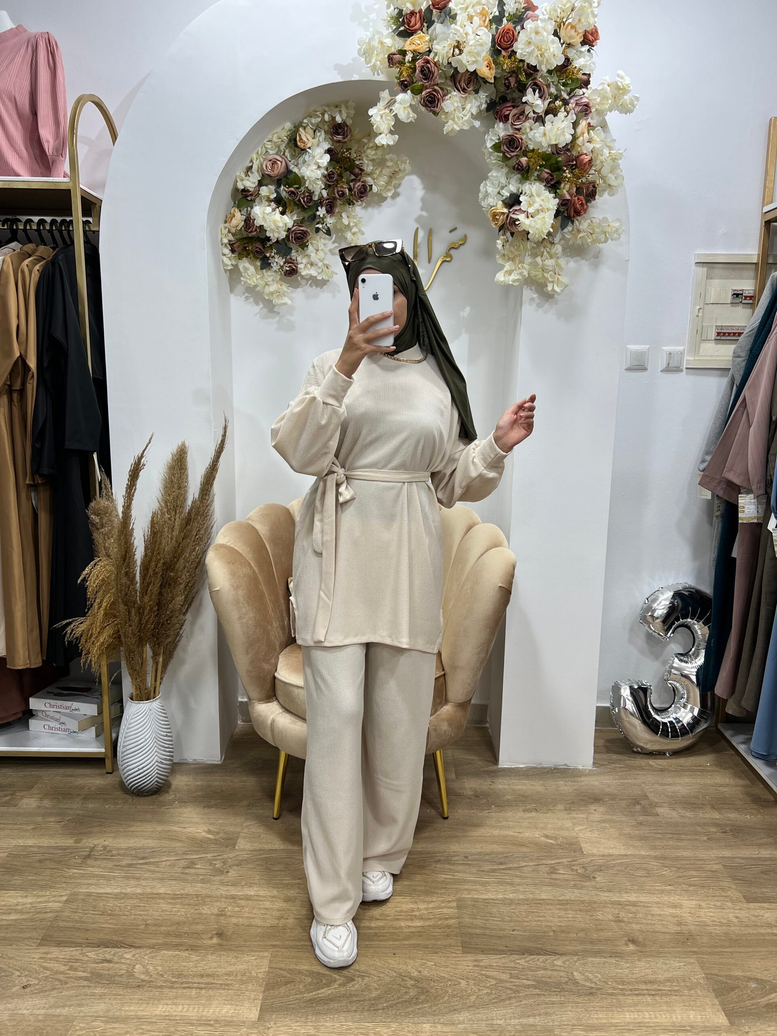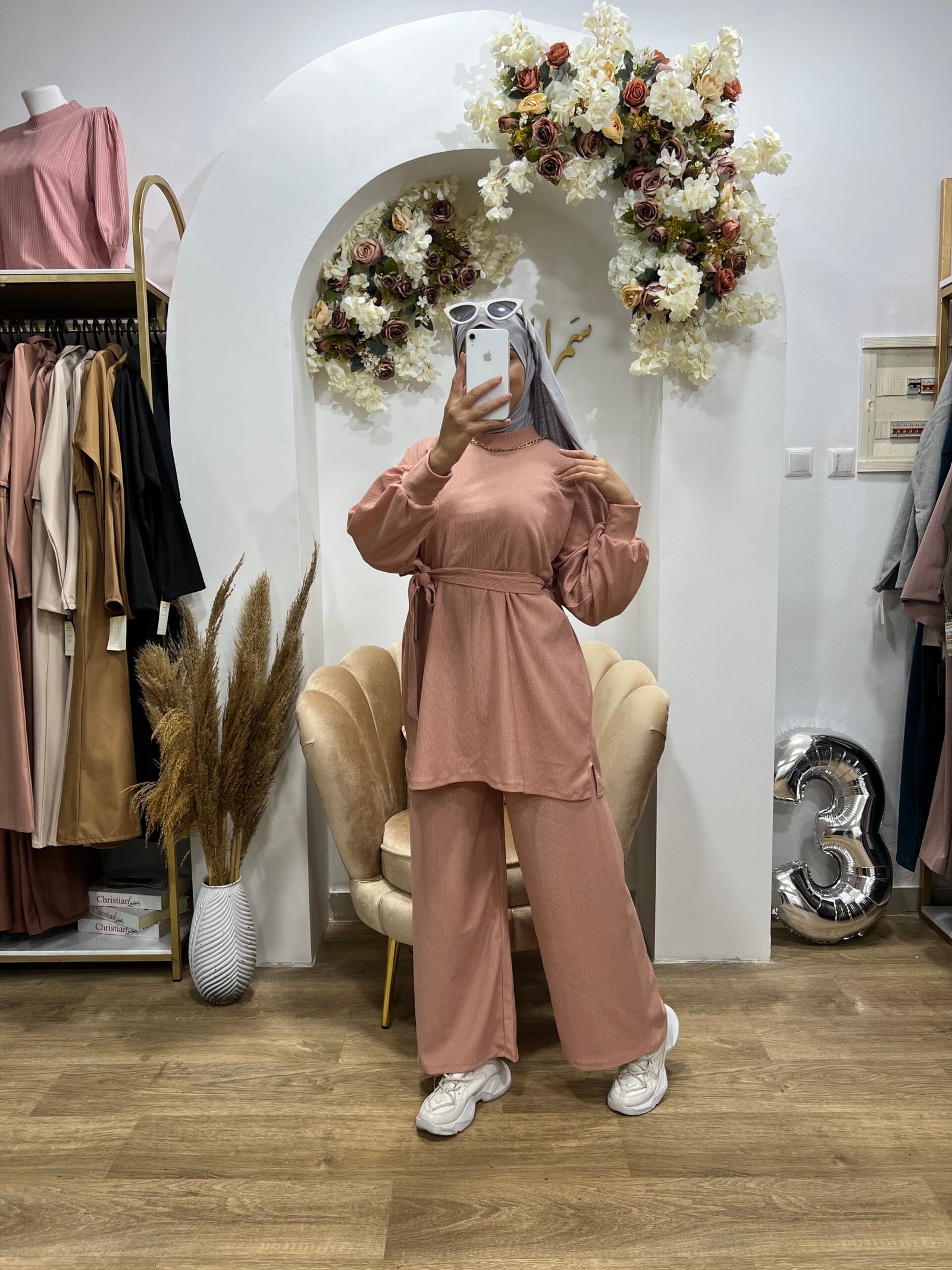 Ensemble pantalon disponible composé d’un pantalon carré avec une tunique.