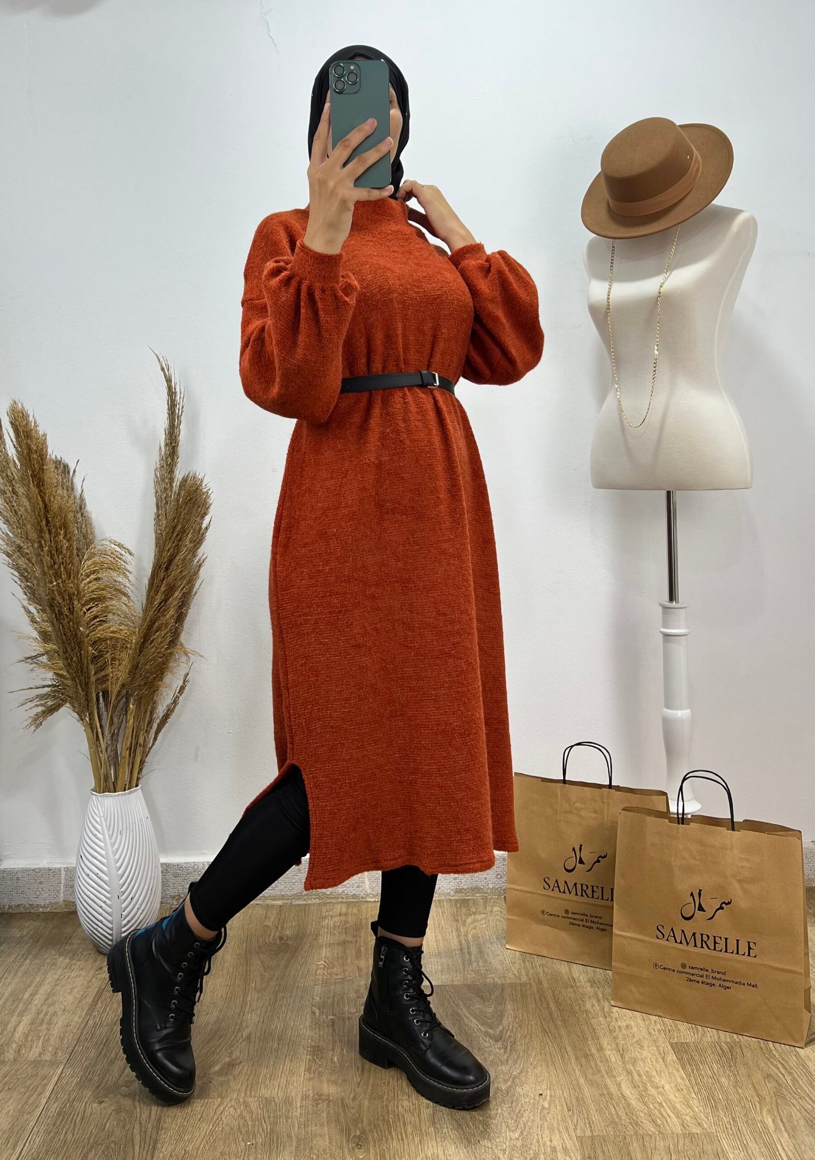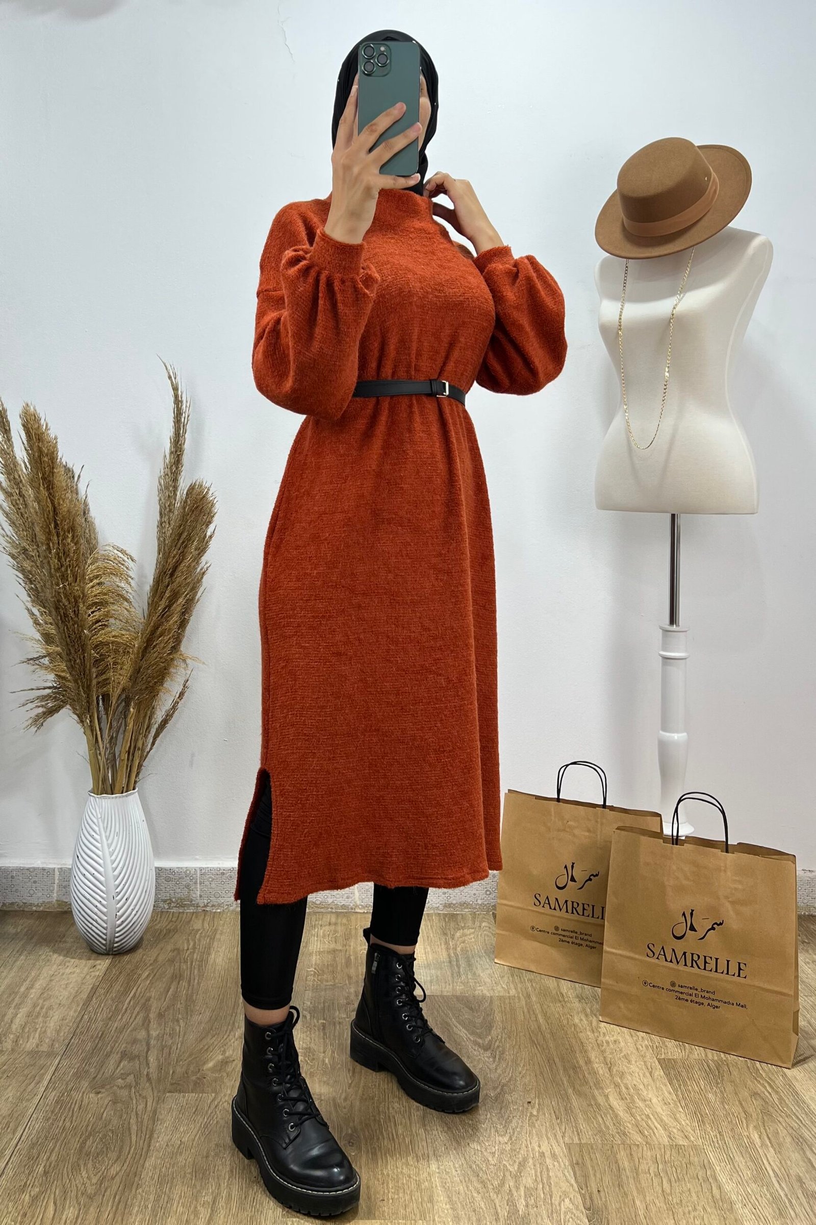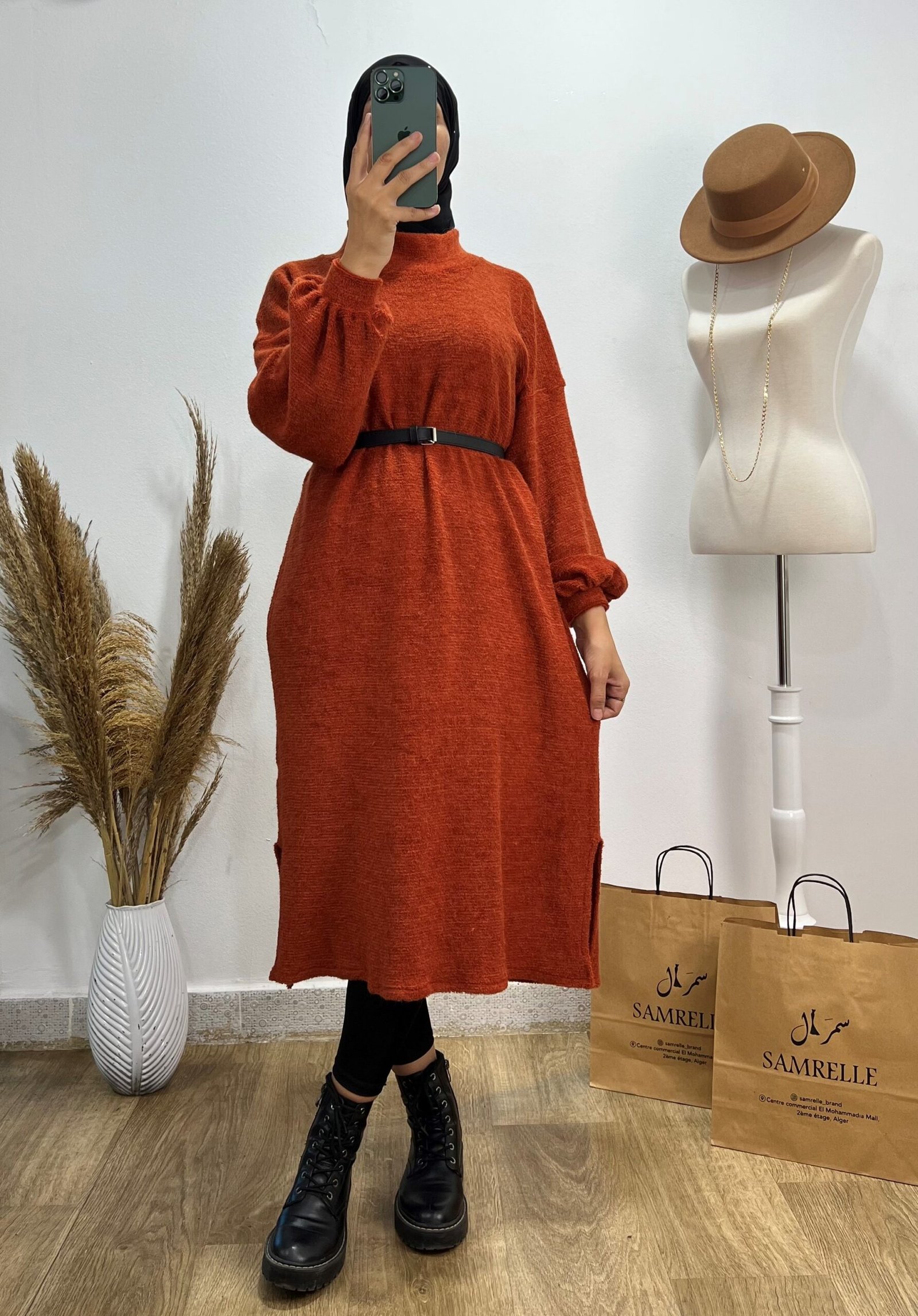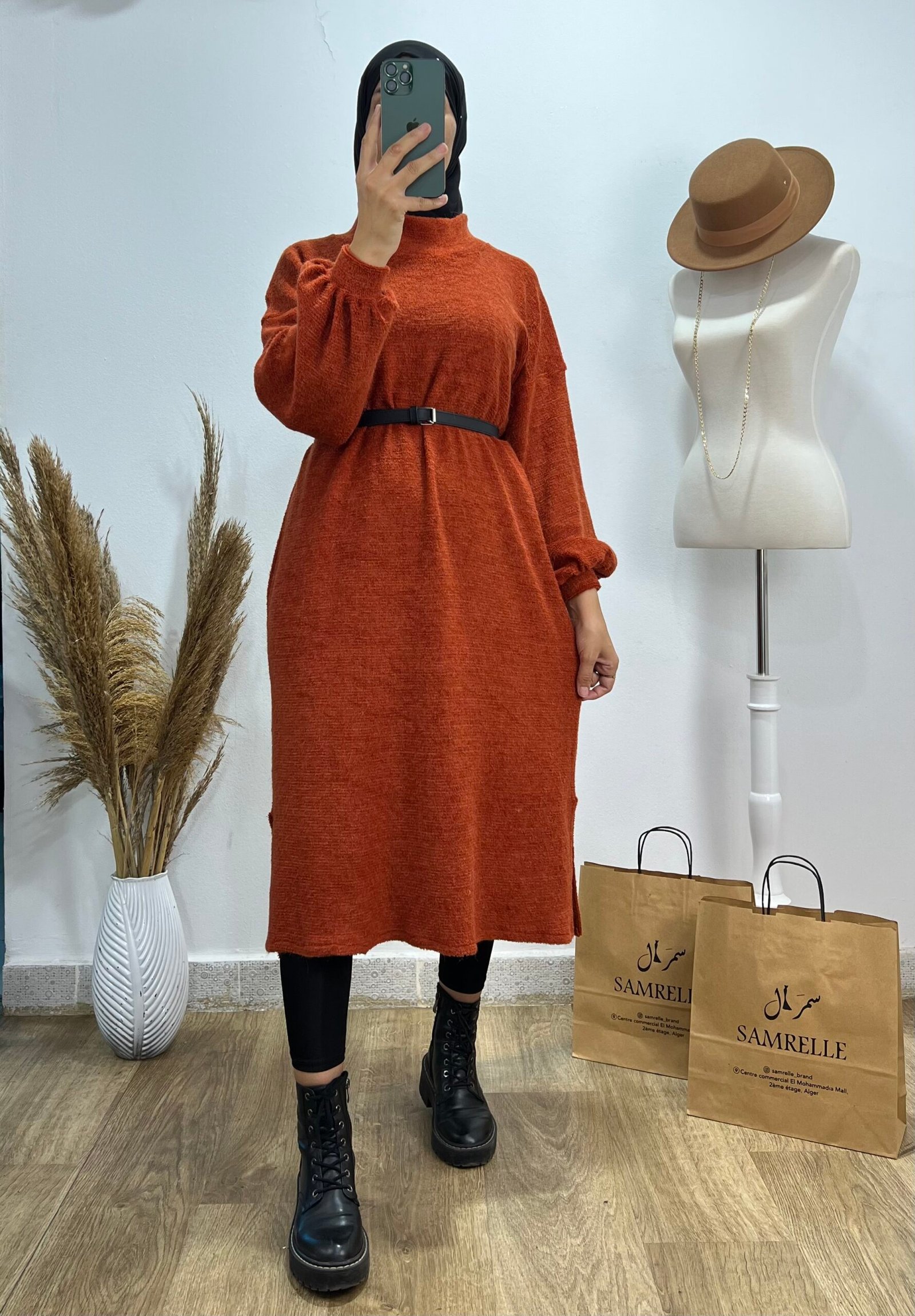 Liquette longue brique disponible avec une ceinture offerte