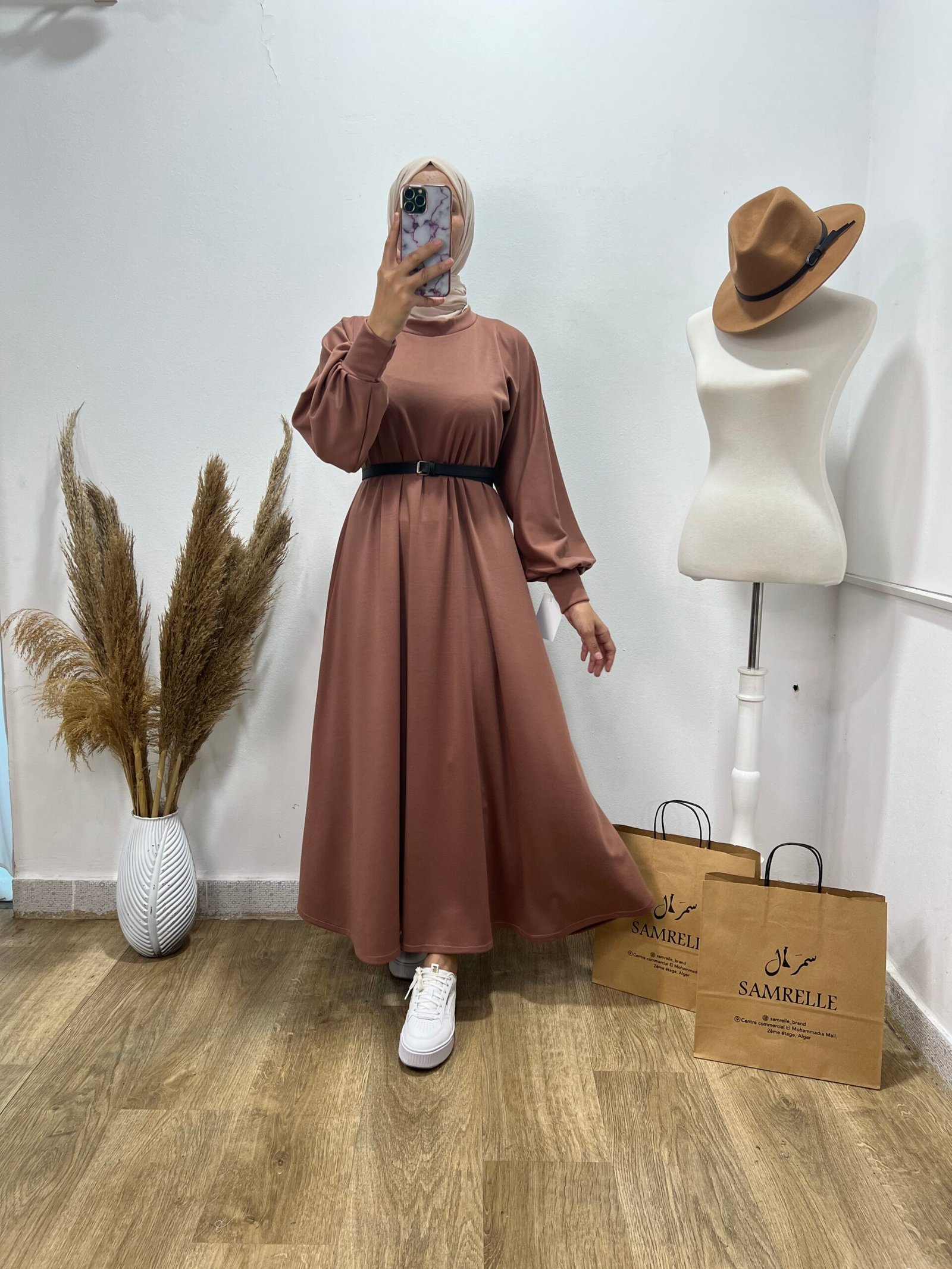 Robe évasée rose disponible avec une ceinture