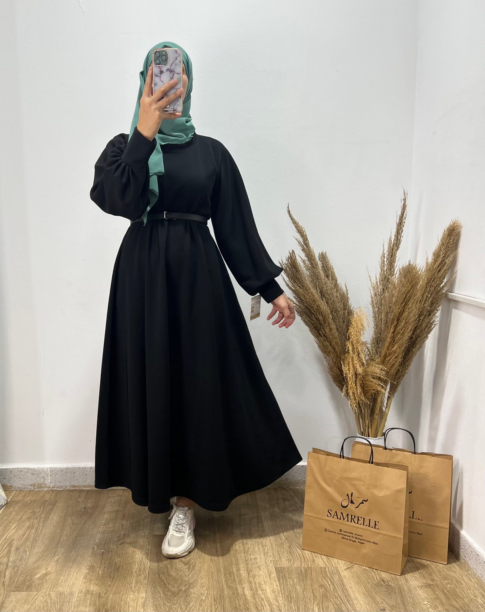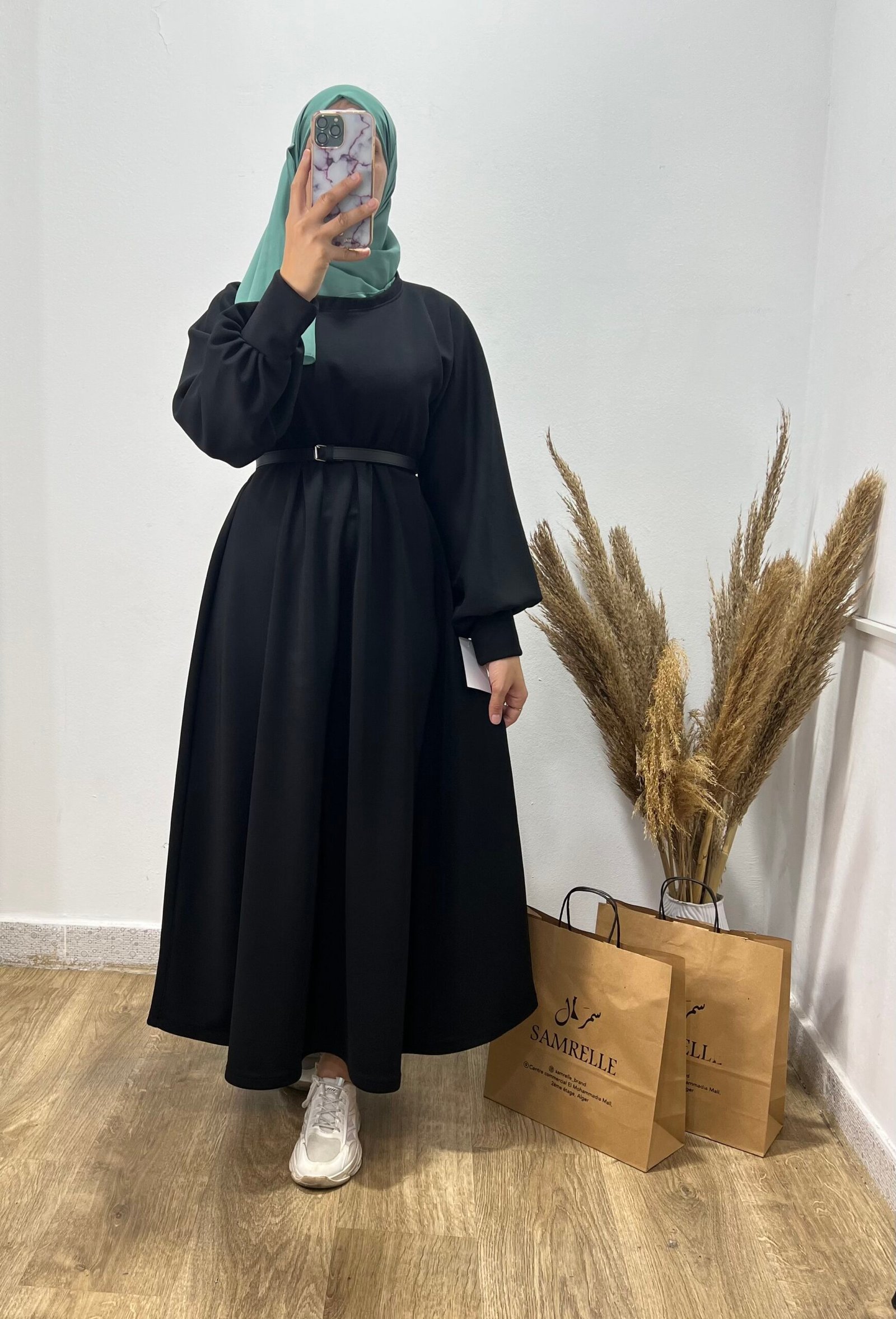 Robe évasée noire disponible avec une ceinture